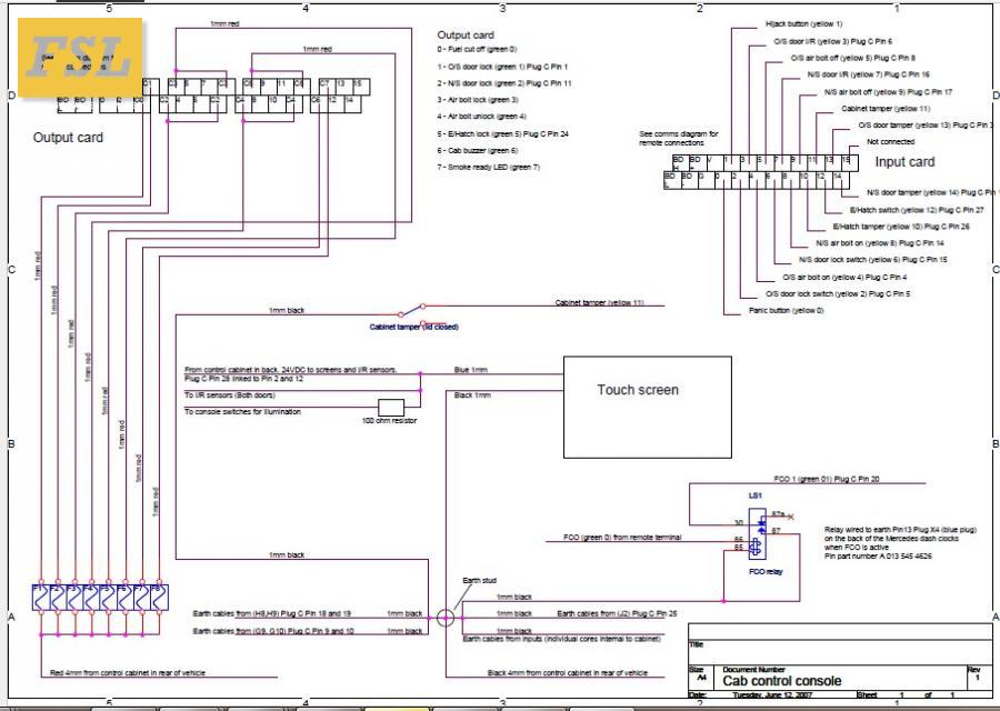 Below is an example of a bespoke Schematic Cab Control Diagram, custom designed in house by our highly trained and experienced Technicians.